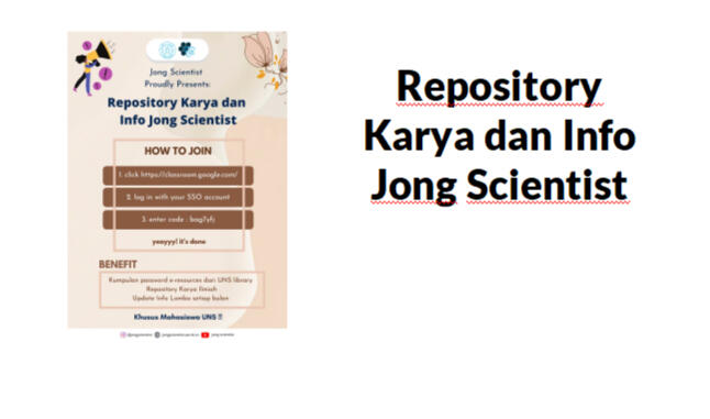 Jong Scientist merupakan UKM di FMIPA UNS yang bergerak dalam bidang keilmiahan.